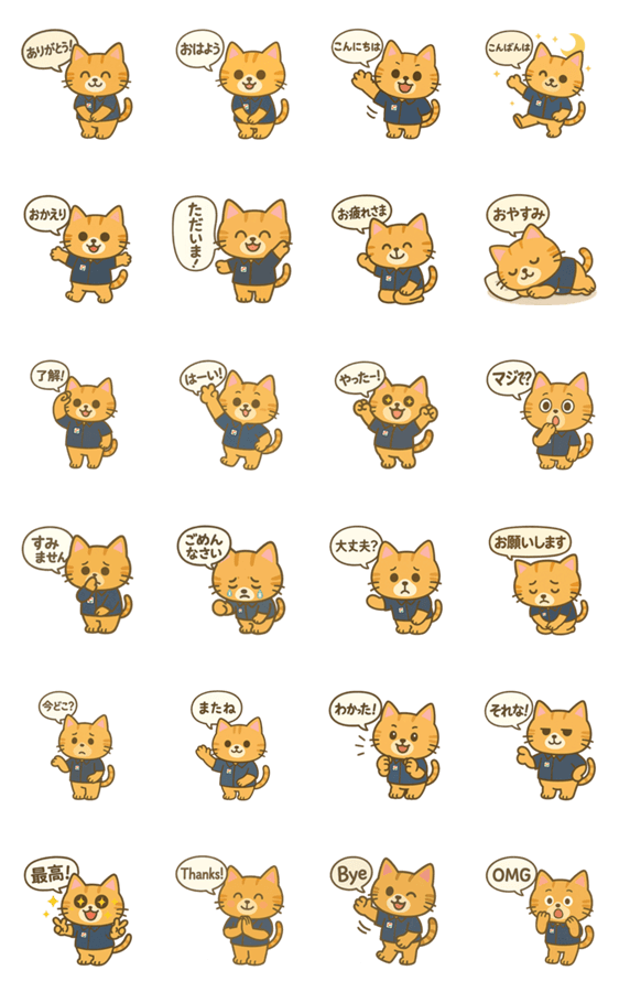 コンビニでバイトしているネコの「いちろー」。普段の何気ない日常で使えるから、かわいくてクセになるかも!?