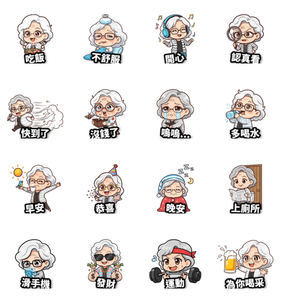 | スタンプ説明 | This lovely granny is here to express all your daily moods and moments! |