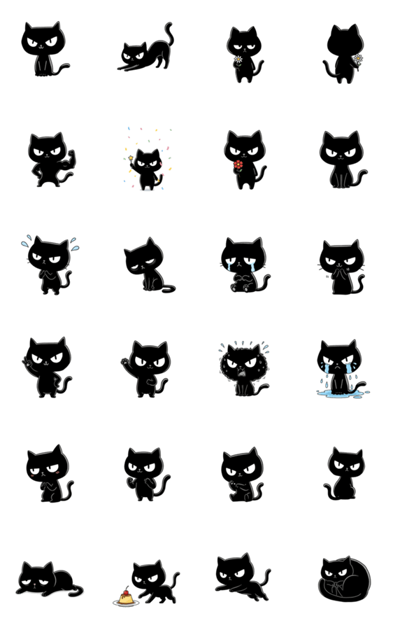キリッとした目の黒ねこ、文字なしバージョン。 ちょっぴり目つきが悪くてクールに見えるけど、じつはとっても可愛い。毎日を一緒に楽しむスタンプです。