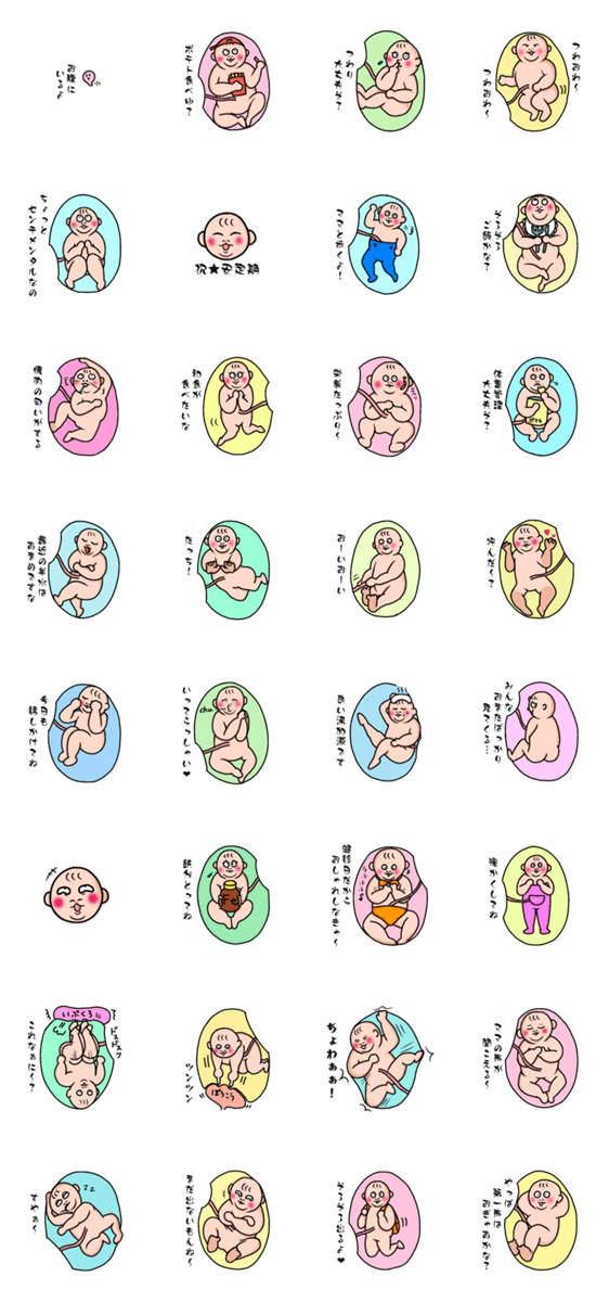 胎児のスタンプです。不安な妊娠期間が少しでも楽しくなると良いなと思い作りました。