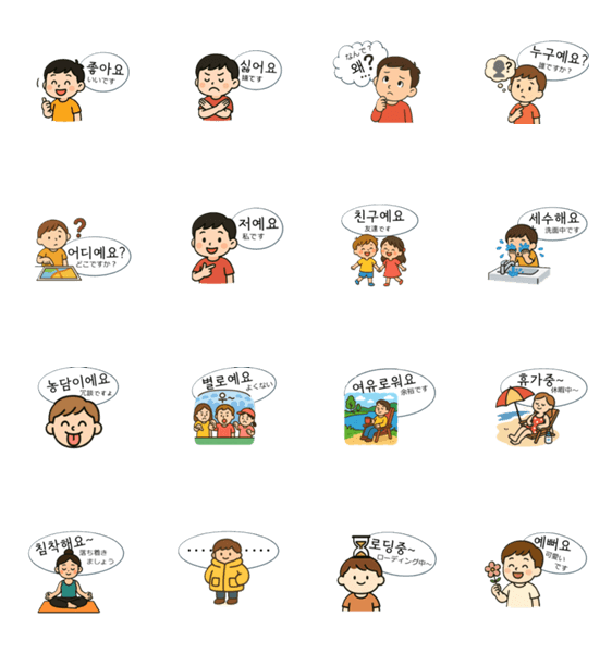 可愛いAIイラストに韓国語表現と日本語訳を入れました。