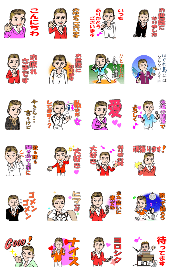 歌手の一条聖矢さんの似顔絵スタンプです。 ご本人の確認・承認済です。 ファンや近いしい方なら判るトークなども色々あります