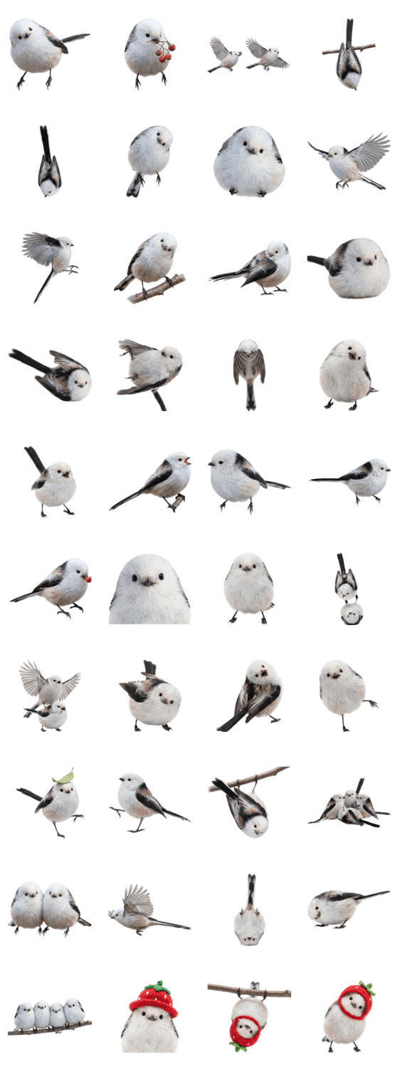 かわいい 白い小鳥 ふわふわ もふもふ 北海道 野鳥 癒し 冬 鳥 写真 リアル ナチュラル 人気 LINE トーク emoji 雪 景色 小さな鳥 鳥スタンプ ほっこり 可愛い 癒し系