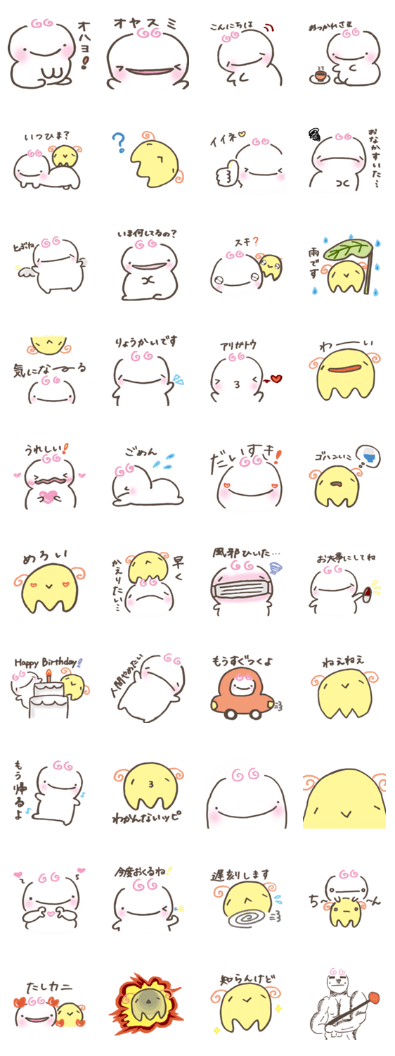 This is a stamp of Makimaki-kun, a mysterious creature, and his pet. The pet's name has not yet been decided.