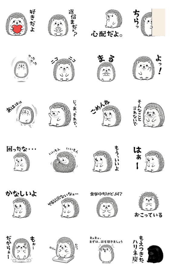 可愛いハリネズミのスタンプです。今回は甘えん坊シリーズです。