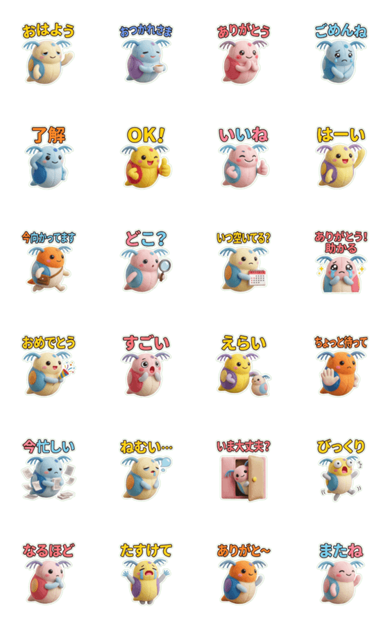 スタンプ説明 かわいいミジンコのぬいぐるみのスタンプです。