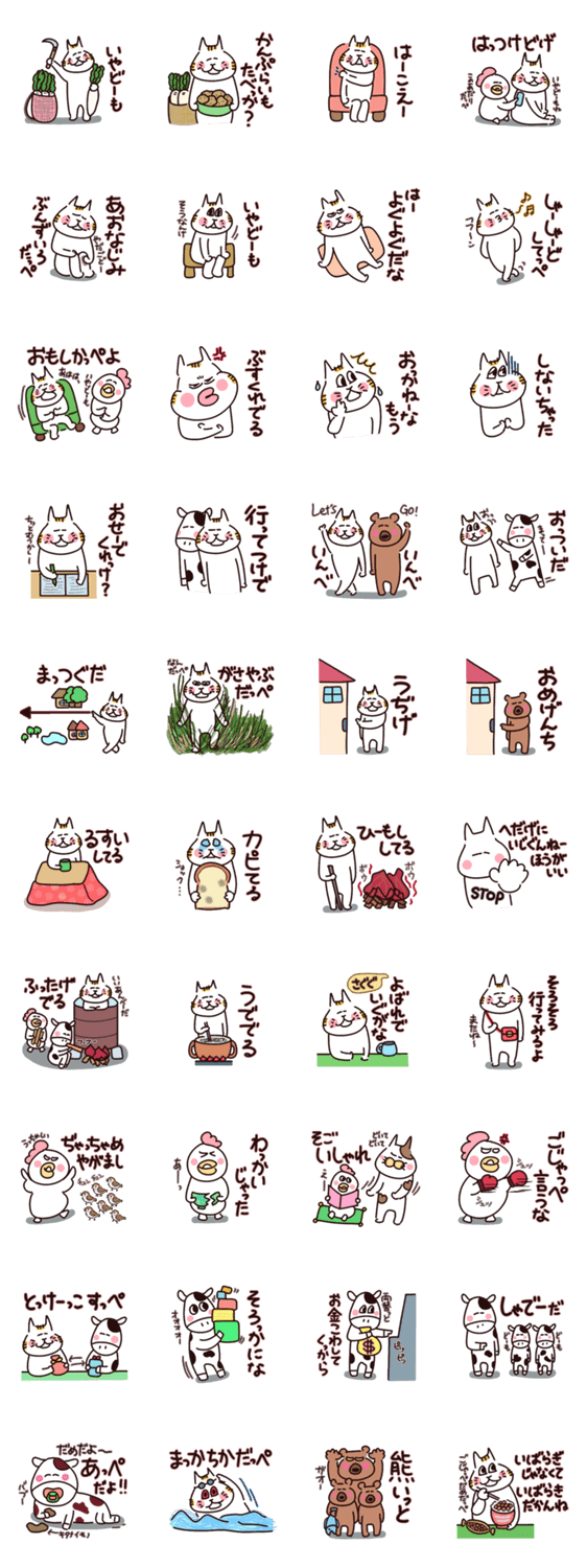 白ネコのあいうえお・・・ってるスタンプ