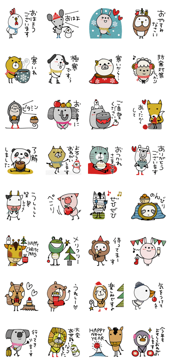 mottoのやさしいアニマル♡冬 -LINEスタンプマニア