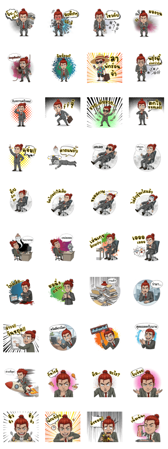 Mr. Red Topknot returns as a cheeky office worker! Perfect for every work mood: busy, burnt out, or ready to go home. Spice up your chat now!