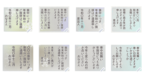 喪中のお知らせ 寒中見舞い 年賀状欠礼 年賀状じまいに使える書き込めるスタンプです。名前や挨拶を自由に入力でき、何度でも書き換える 大人向け デザイン 喪中ハガキ風 現在この商品は一部のスマートフォン版LINE 10.3.0以上のトークルームでのみ使用できます。動作環境の最新情報はヘルプをご確認ください。