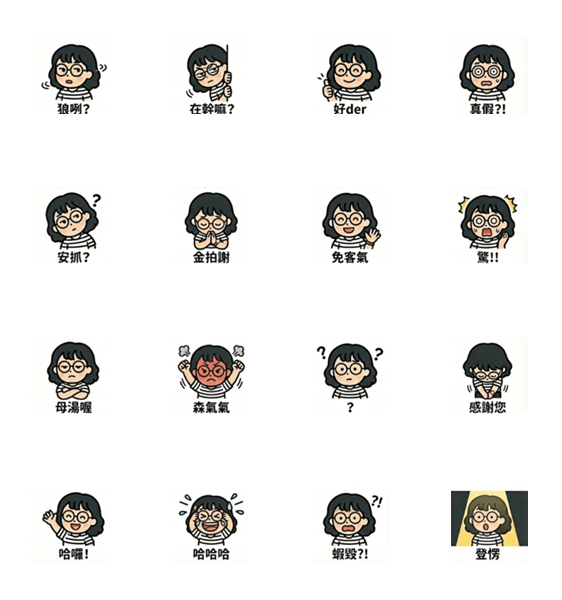| スタンプ説明 | Meet the quirky girl with glasses! 16 expressive reactions for daily chats. From "Really?!" to "Thank you," she covers all emotions perfectly! |