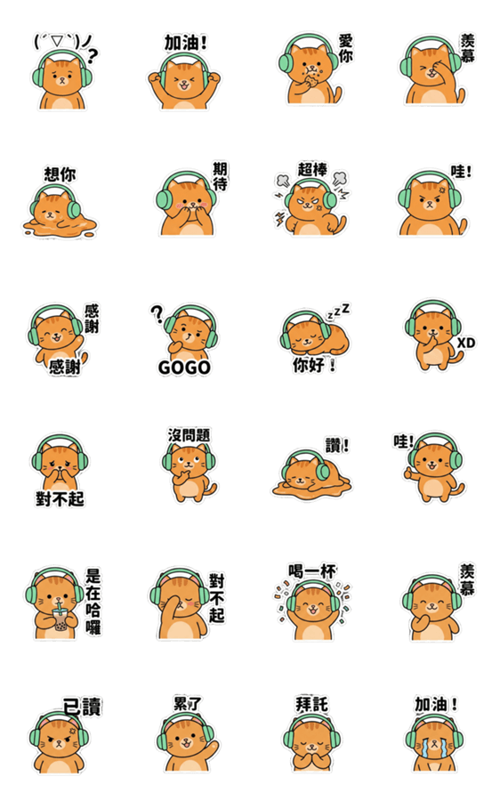 Meet the adorable ginger cat in mint green headphones! Perfect for expressing every mood with its super cute poses.