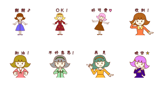 | スタンプ説明 | ちょびっとレトロ風味な女の子が、台湾華語で、定番のあいさつなど日常会話につかう言葉をほのぼのとお届けします。 |