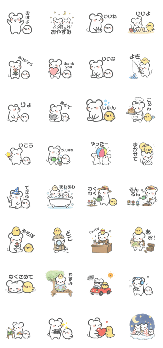 ありがとうございます。しろねずみと、ひよこちゃんを使って作っています!ぜひ使ってください。
