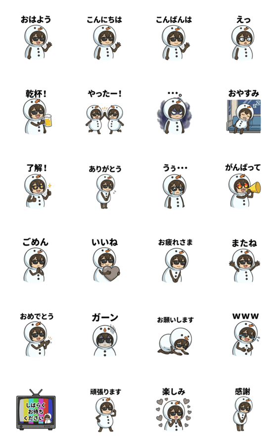 かわいいめがね女子(クリスマス・雪だるま)のスタンプをお楽しみくださいませ