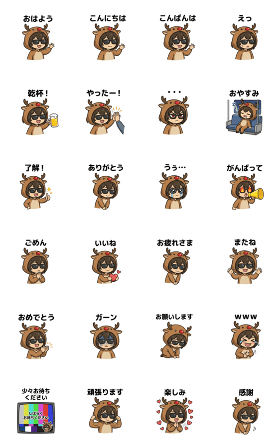 かわいいめがね女子(クリスマス・トナカイ)のスタンプをお楽しみくださいませ