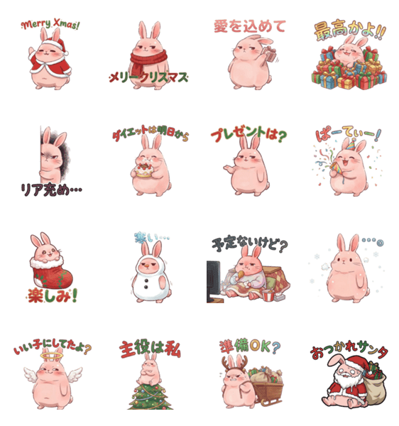 | スタンプ説明 | ぽっちゃりうさぎ「ふくまる」の冬・Xmasスタンプです。定番の挨拶から、冬の日常で使えるゆるい会話まで。家族、友達、恋人に愛を込めて。 |