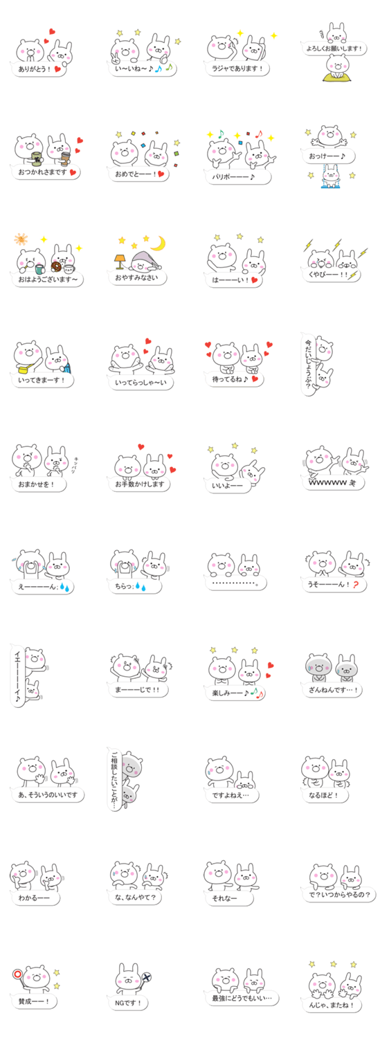 吹き出しと白くてかわいいクマとウサギのスタンプです。