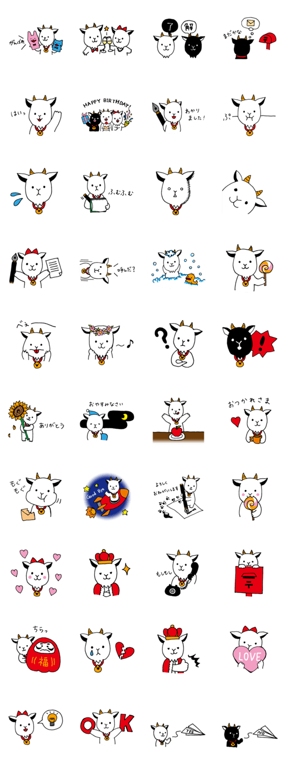 | スタンプ説明 | 手紙が好きなヤギのジョージとその友達、メアリー、ルーカス。Letter Village から出てきた3匹と楽しい時間を。 |