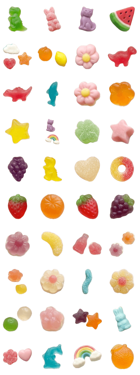 お菓子 スイーツ かわいい フルーツ味 ゼリー 甘い おいしい 癒し ぷにぷに 柔らかい 色とりどり 写真 リアル 人気 ナチュラル かわいい系 おやつ LINE トーク