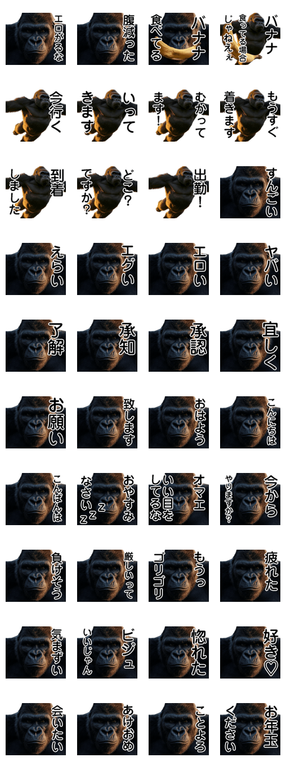 小学生でも凄く使えるゴリラ【相槌・返信】。エロがる/ウザい/挨拶/あいさつ/煽り/煽る/面白い/ネタ/ボケ/日常会話/普段使い/ゴリラ/ごりら/サル/猿/敬語/あけおめ/正月