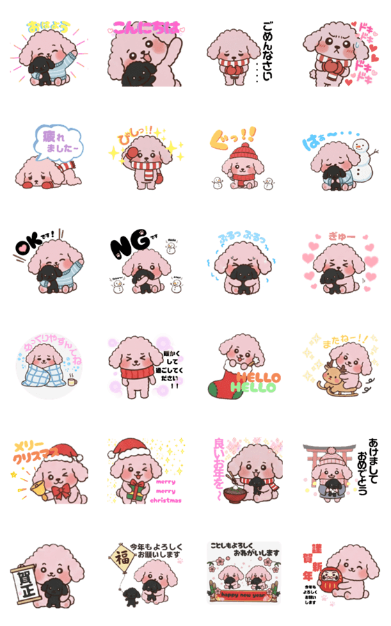 ピンクのトイプー♡ノアちゃんのお正月やクリスマスにも使える冬用スタンプです。