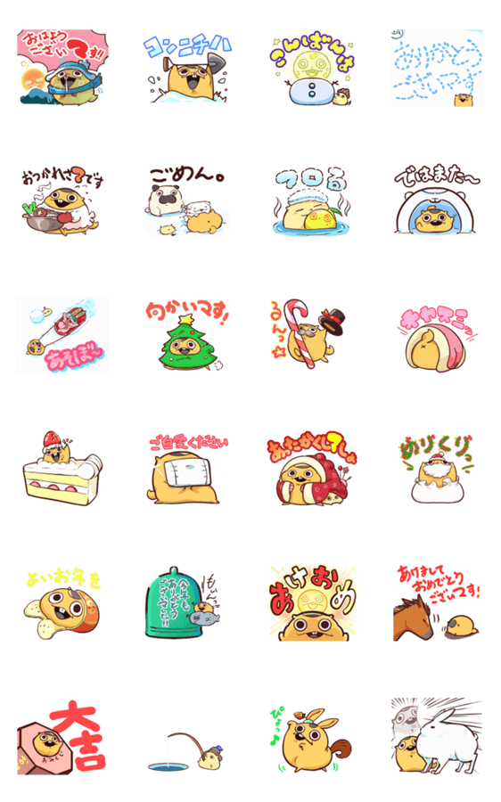かんたんマーモット冬バージョンです。うごきます。 季節のスタンプの他、年末年始にも使える内容を取り揃えています!
