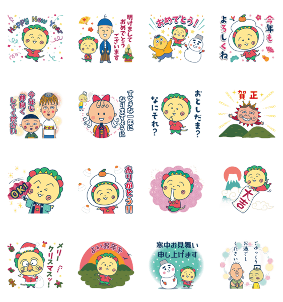 | スタンプ説明 | (※こちらは再販スタンプになります。重複購入にご注意ください。)お正月やクリスマスなど、年末年始に使えるコジコジのスタンプです。 |