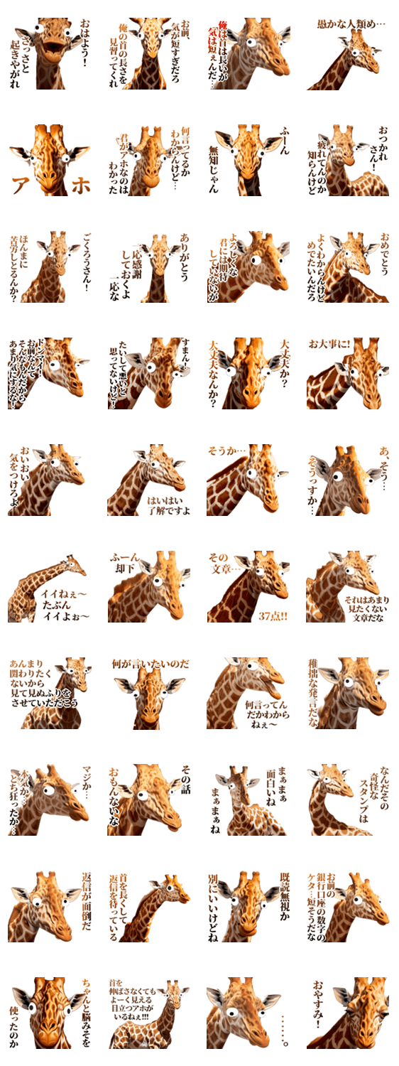 なんかうざい、むかつくキリンのスタンプです。ウザい、ムカつく、面白い、ネタ、毒舌、煽り、煽る、きりん、キリン、麒麟、Kirin、ジラフ、偶蹄類、動物、首が長い、笑い