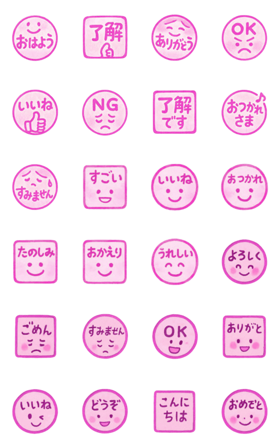 一年中使える可愛い表情のイラストつきの印鑑です。好きなアイドルのメンバーカラーや推し活に。ピンクはんこ・判子・水彩画風・ぷりちー・使いやすい日常会話