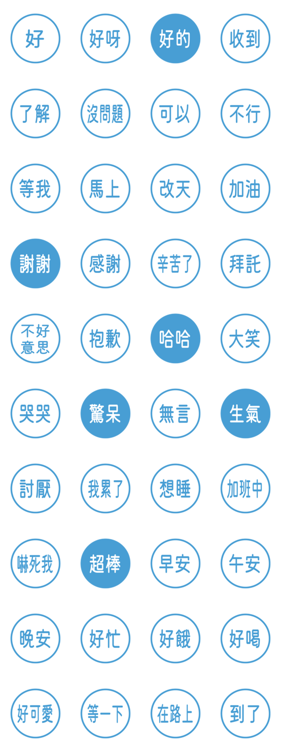 中国語(繁体字)の日常表現です。#ミニマル テキスト 台湾 漢字 もじ 返答 基本 シンプル 使いやすい ハンコ 判子 返事 連絡 仕事 日常 会社 ビジネス たおずん