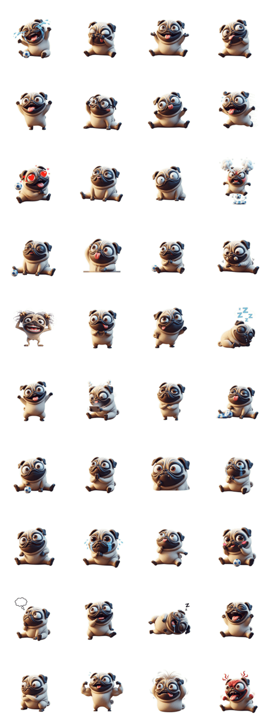 | スタンプ説明 | 最高のテンションで「こんにちは!」を叫ぶ、愛らしいパグのスタンプが登場!友だちへの挨拶、久しぶりの再会、純粋な喜びの表現にぴったり。シワシワのお顔と溢れるほどの |