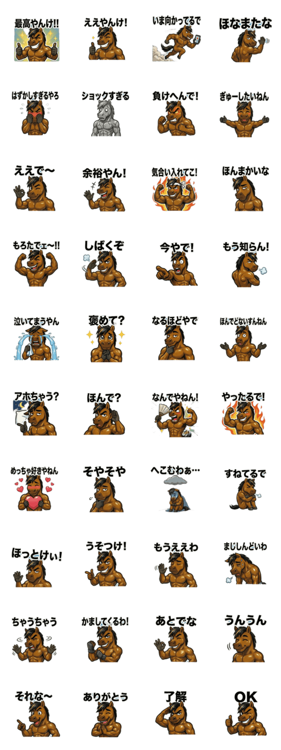最強の関西弁バージョンが登場やで!ツッコミ・ノリ・励まし・日常会話を全部このムキムキ馬が筋肉で届ける!友達家族恋人ジム仲間とのトークが一気に盛り上がるでぇ