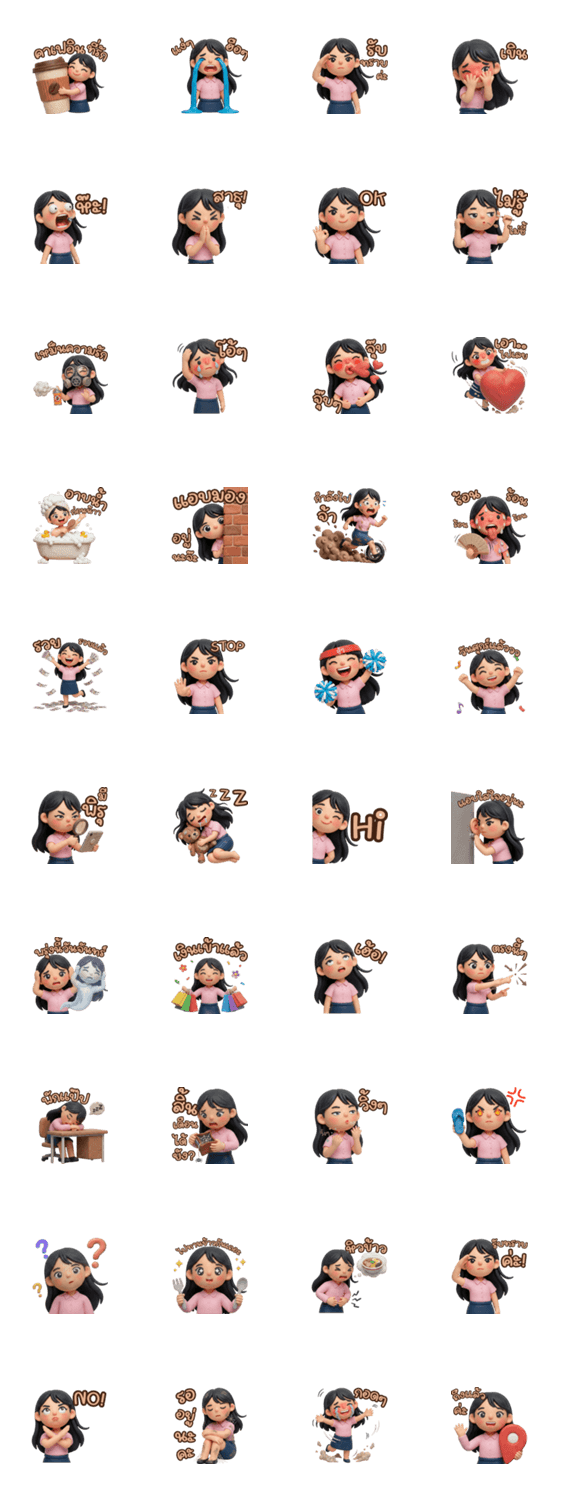 Brighten chats with "Nong Chompoo", the 3D clay office worker! Capture work life from grind to payday with cute icing-style messages