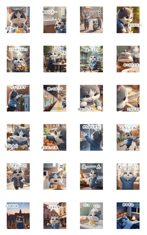 かわいい♡ハチワレ猫の日常を切り取ったスタンプです♪ゆるふわアニメーションで毎日に癒しをプラス♪おはよう/おやすみ/お疲れ様/OK/はーい/ありがとう/毎日/日常/挨拶