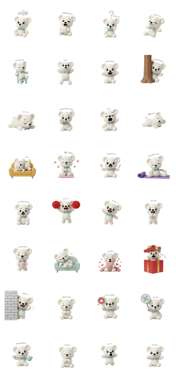| スタンプ説明 | のほほんと暮らすクマさんの日常の1コマを集めたよ♡ なぜか周りもゆったりとした気持ちにさせてしまうのが得意! |