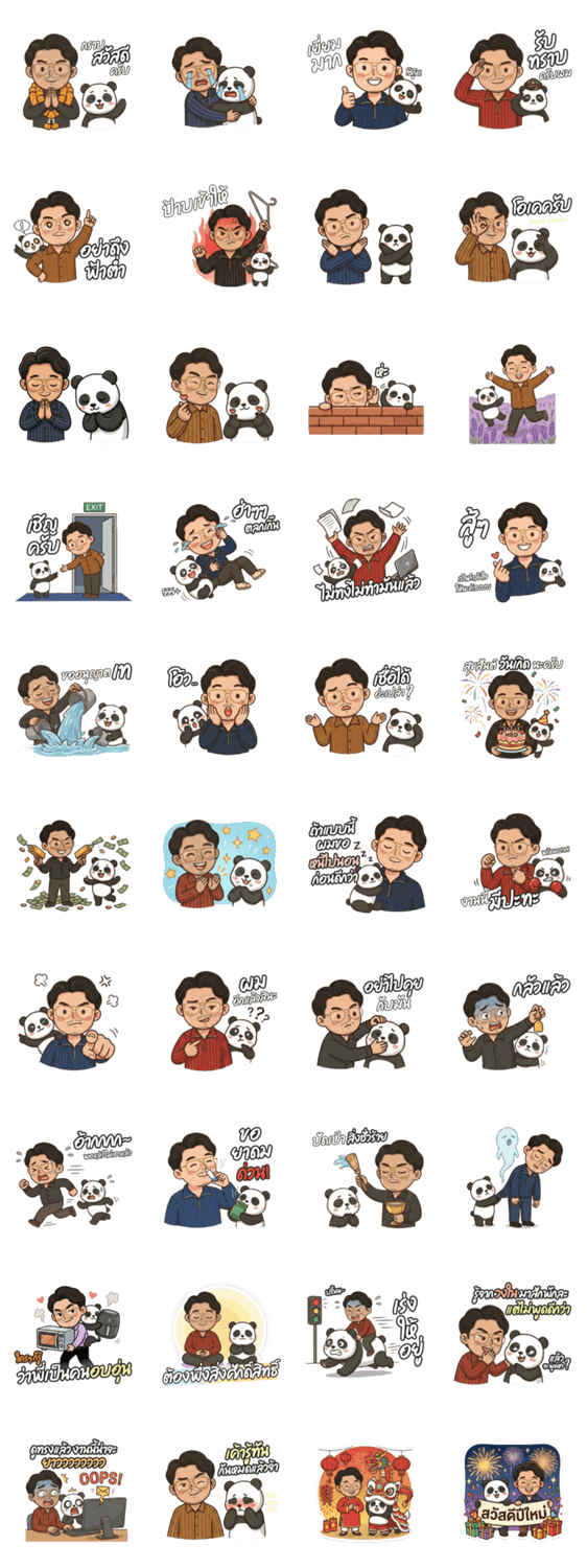 A cozy daily-life sticker set about a man and his panda best friend. Cute moments, chill vibes, and everyday expressions for every chat.