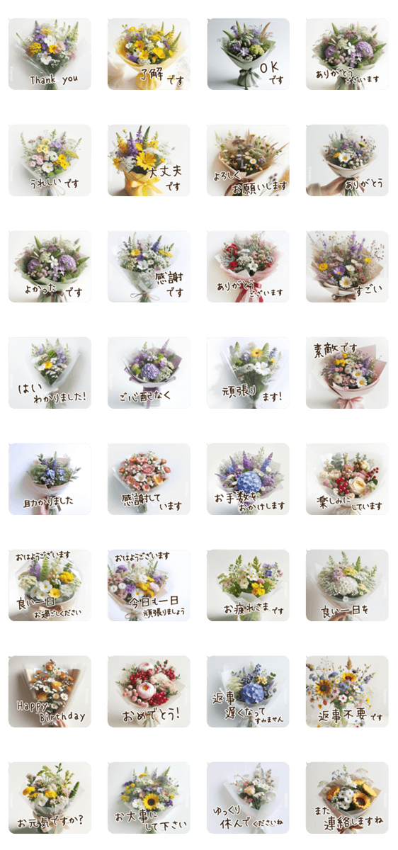 『一年中使える 花と暮らし 便利な毎日2|タンタン』 大人が毎日使える“ちょうどいい”基本スタンプ集。挨拶・丁寧な敬語・連絡の定番フレーズを、上品でやさしい花デザインにまとめました。 友達・家族・職場でも使いやすく、季節を問わず一年中活躍。忙しい毎日のメッセージを、自然と心地よく彩ります。 シンプル上品・使いやすい・大人向け・花モチーフ・日常会話・敬語・報連相・便利スタンプをお探しの方におすすめです。 -