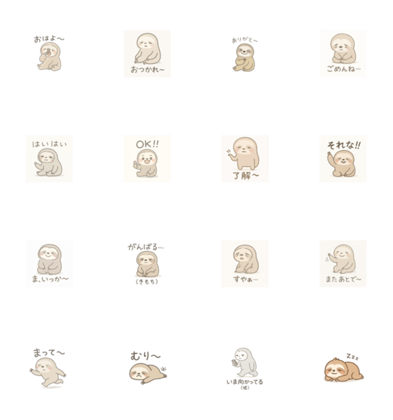 のんびり、ゆるーく使える「スローくん」のスタンプです。 眠そうで力が入っていないけれど、気持ちを伝えたい人へ。