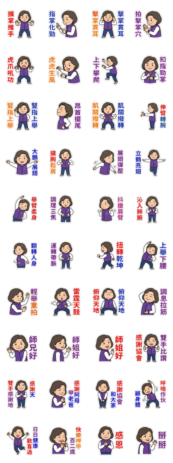 AiYu made these stickers to motivate her health journey.Featuring moves and greetings,they encourage daily practice for wellness.