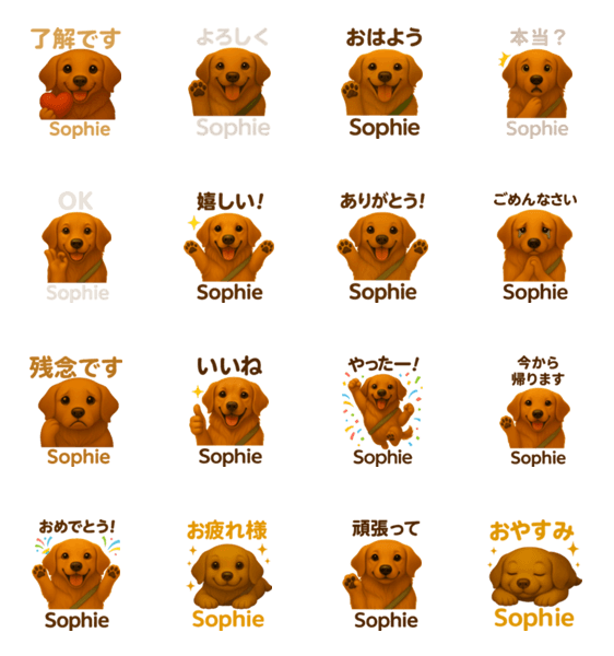 | スタンプ説明 | Stickers featuring my beloved dog, Sophie. |