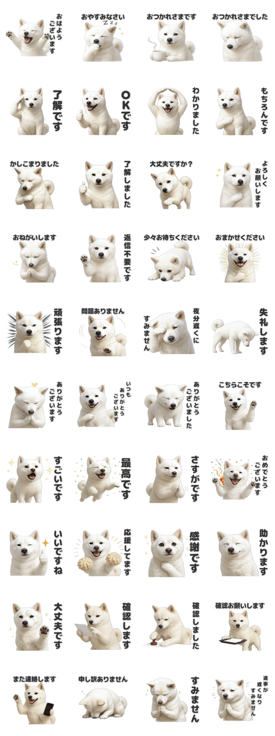 日常で使いやすい紀州犬のスタンプです。/敬語/仕事/丁寧/会社/上司/先輩/連絡/白/わんこ/日本犬/和風/大人/礼儀/誠実/お疲れ様/返信/挨拶
