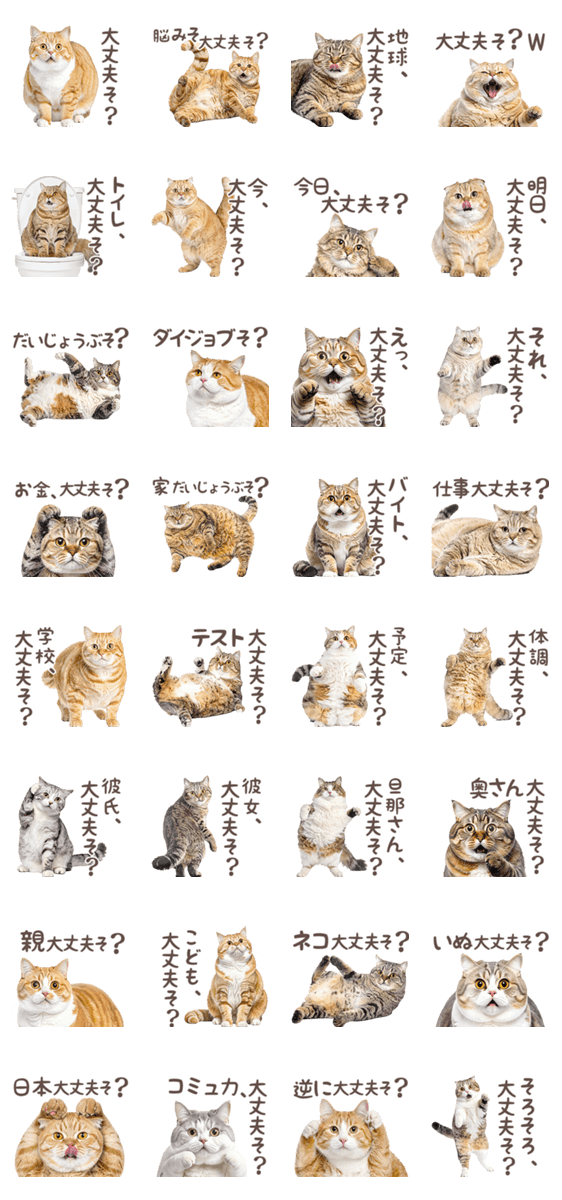 リアル可愛いでぶネコの写真スタンプ。ねぎらい励まし心配する気遣い面白いネタゆるいだるい。ネガティブポジティブな推しねこ科動物家族先輩友達のプレゼントにおすすめ