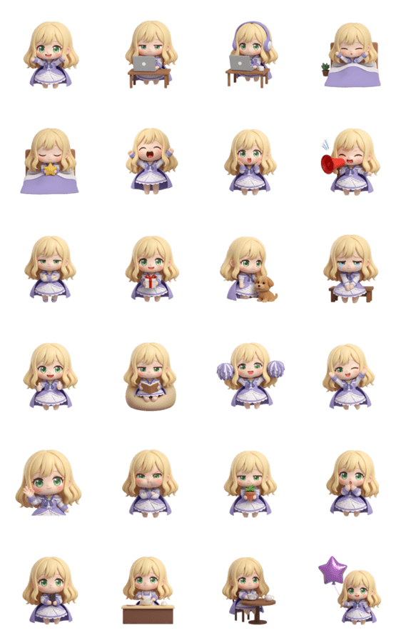 Cute 3D chibi figure with blonde hair, green eyes, and a star wand