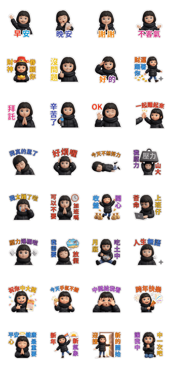 | スタンプ説明 | A luck-filled set of 32 Qimengzi stickers for New Year greetings, good-fortune wishes, and fun, positive messages. |