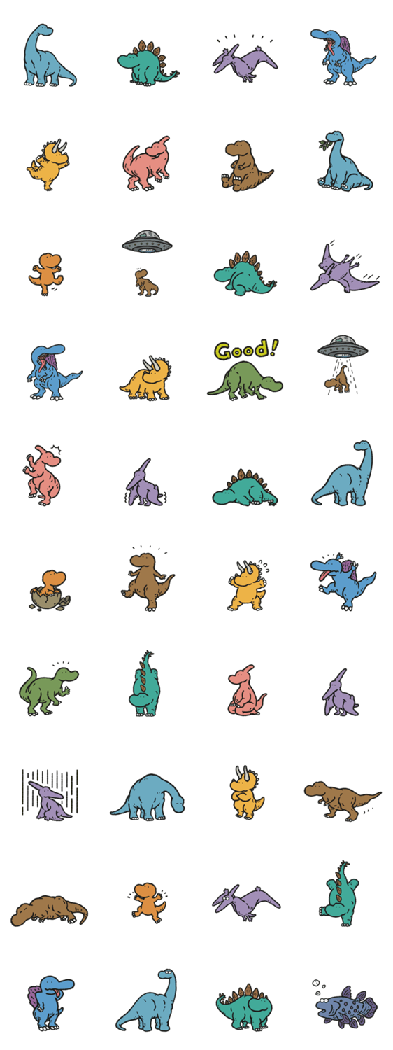 | スタンプ説明 | 1億年前の、のほほんとした日常です。ゆるい恐竜でゆるーく返信してください。ほのぼの癒し。 |