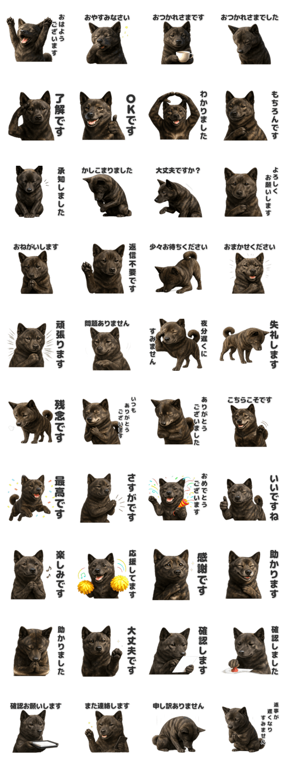 毎日使いやすい甲斐犬のスタンプです。/いぬ/かわいい/黒/シンプル/敬語/丁寧/仕事/便利/家族/友達/大人/渋い/かっこいい/癒し/わんこ