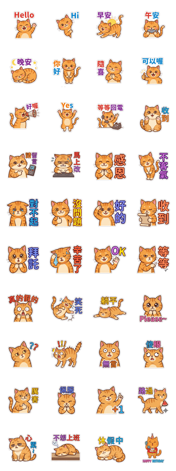 Meet the most expressive Ginger Cat! Whether you are busy at work, feeling tired, or celebrating a special day, this orange is perfect for you.