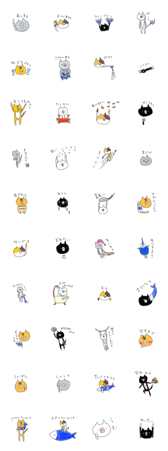 白ネコのあいうえお・・・ってるスタンプ