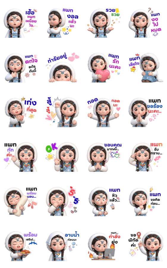 Say hello to this adorable girl with braids! Her chubby cheeks and vibrant 3D look will make your messages stand out. Cute, polite, and full of energy.